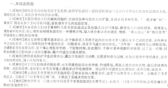 9、C【解析】班主任工作的中心环节是组织和培养班集体,而开展工作的前提是了解和研究学生,包括了解研究学生个人、群体关系及学习和生活环境。