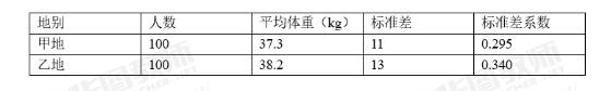 D.乙地的标准差系数为0340,乙地学生的体重更具有代表性