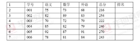 27.如下图所示,在Exce中单击单元格F2,欲求出表中所列6名学生的总成绩排名,应输入的公式是()