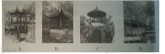 24.中国古典园林建筑最具有特色的建筑样式主要有亭台轩榭。下列选项汇总,不属于“亭的"是()